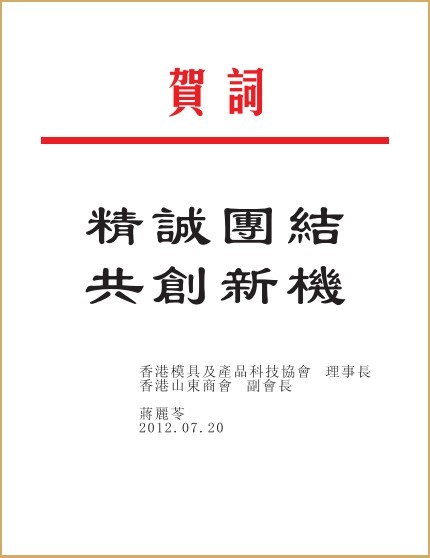 香港中華廠商聯(lián)合會賀信 香港模具及產(chǎn)品科技協(xié)會賀信