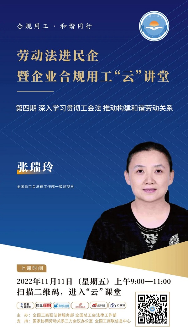 全國工商聯(lián)法律服務(wù)部擬于本周五舉辦勞動(dòng)法進(jìn)民企暨企業(yè)合規(guī)用工“云”講堂——深入學(xué)習(xí)貫徹工會(huì)法,推動(dòng)構(gòu)建和諧勞動(dòng)關(guān)系。