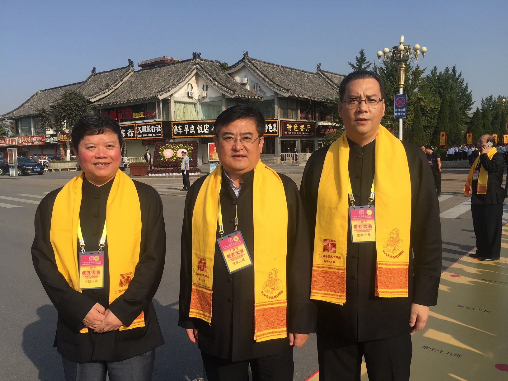 9月28日,是我國古代偉大的思想家、教育家、儒家學派創(chuàng)始人孔子誕辰2568年紀念日。上午,孔廟內(nèi)禮樂和鳴,莊嚴肅穆,丁酉年紀念孔子誕辰2568年公祭大典在曲阜孔廟隆重舉行。來自美國、俄羅斯、德國、新加坡、巴基斯坦、南非等20多個國家和地區(qū)3500余名來賓參加祭孔大典。我會執(zhí)行秘書長陳振永受王立新會長委托應邀出席祭孔大典。