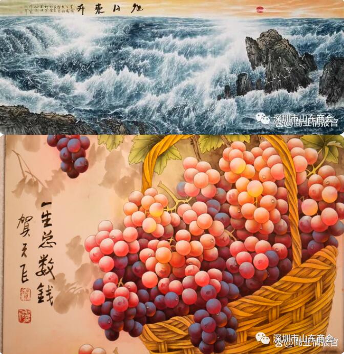 王立新會長在致辭中,向畫展的成功舉辦表示祝賀。他指出賀老師的畫和書法沖擊力極強,讓人過目不忘,印象深刻。他的畫作不同于古人,不同于今人,不同于洋人,也不同于同仁,完全屬于他自己。他畫的葡萄,細膩傳神,栩栩如生,有生命,有靈魂;他畫的胡楊、古柏,蒼勁剛毅、堅忍不拔;他畫的山川、瀑布、云海、日出,氣勢恢宏、大氣磅礴。讓我們從畫中感受到了“大美中國”的韻味。他的許多畫作被國家級的藝術館、美術館、博物館收藏。他表示寶安區(qū)是深圳的經(jīng)濟大區(qū)、工業(yè)大區(qū)和出口大區(qū),產(chǎn)業(yè)基礎雄厚,文化底蘊深厚。此次畫展的成功舉辦,充分證明了寶安區(qū)委區(qū)政府對文化建設的關注和重視。希望以此為契機,山東商會與寶安區(qū)部門加強互動交流,為寶安區(qū)的經(jīng)濟社會發(fā)展做出貢獻。