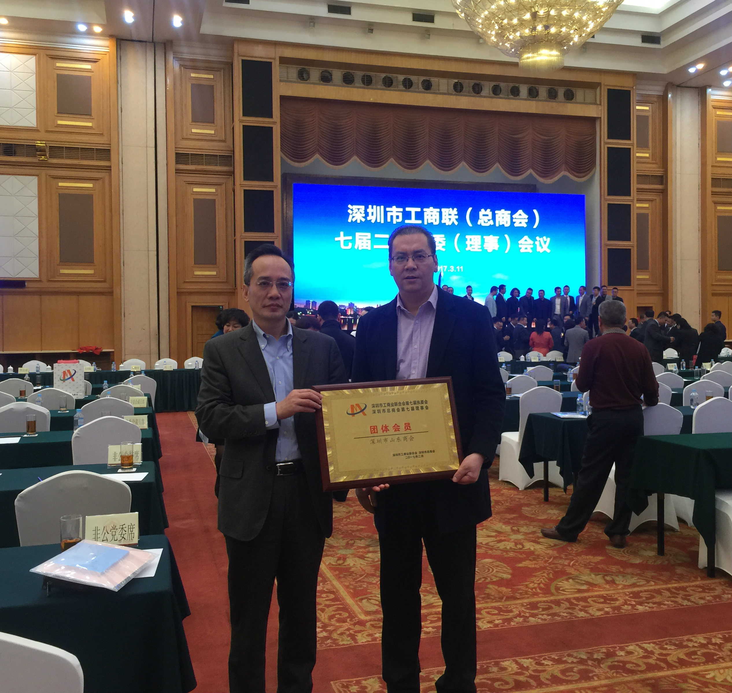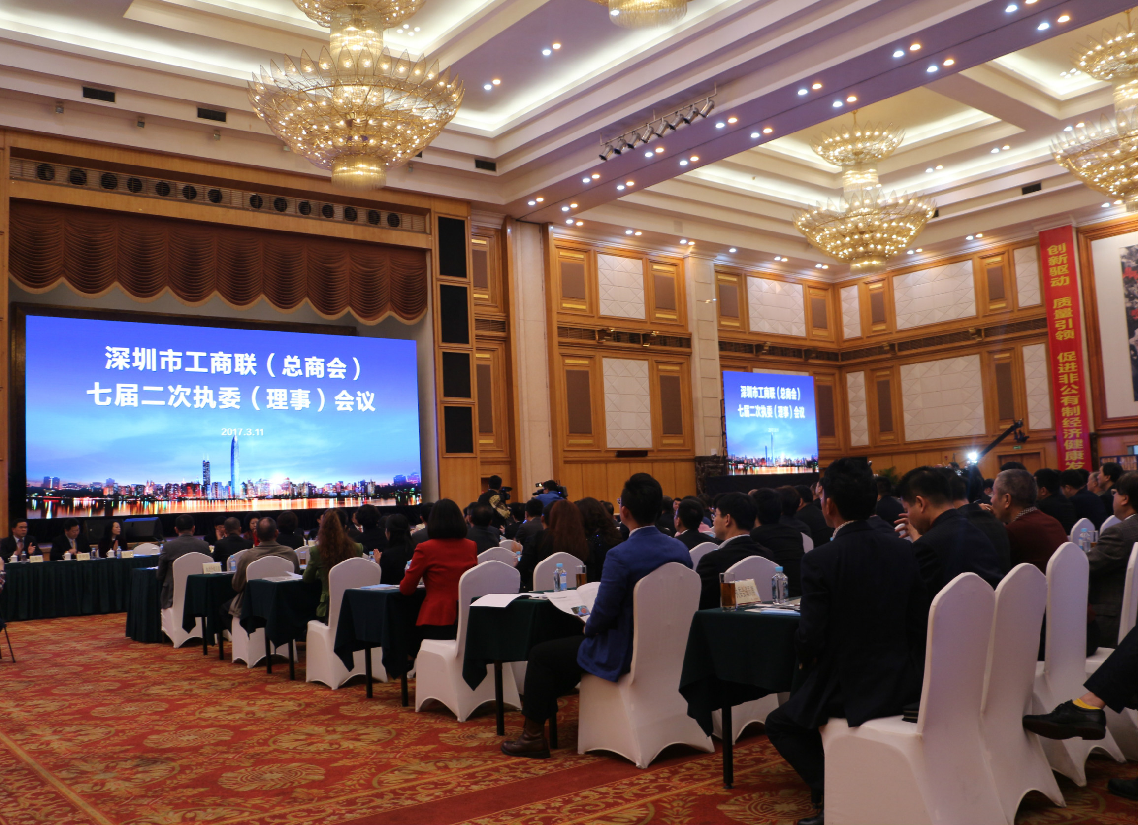 3月11日下午,深圳市工商業(yè)聯(lián)合會(總商會)七屆二次執(zhí)委(理事)會議在深圳市五洲賓館五洲廳隆重召開。市委統(tǒng)戰(zhàn)部副部長、市工商聯(lián)黨組書記蔡立主持會議,市委常委、統(tǒng)戰(zhàn)部部長林潔出席會議并作重要講話。我會常務(wù)副會長兼秘書長王維,監(jiān)事長王澤云,執(zhí)行秘書長陳振永,常務(wù)副會長單位深圳賽菲爾珠寶首飾有限公司總經(jīng)理王卓應邀出席此次活動。
