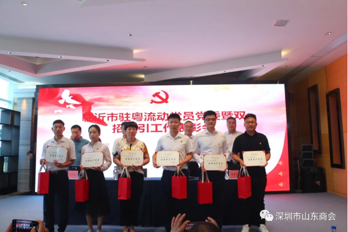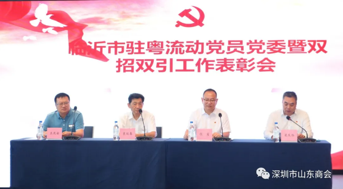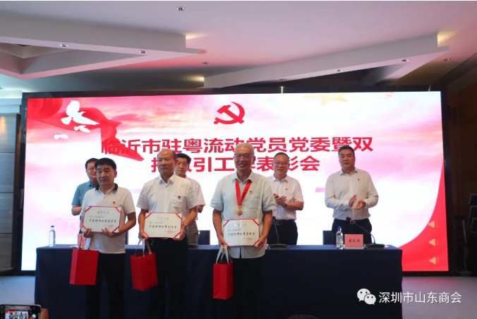 7月11日上午,山東臨沂市駐粵流動黨員黨委暨雙招雙引工作表彰會議在深圳市寶能黨群服務中心召開。山東省人民政府駐廣州辦事處主任袁延春出席會議并講話。我會執(zhí)行會長兼秘書長梁慶偉受王立新會長委托代表山東商會出席并主持了會議。山東臨沂市駐粵流動黨員黨委書記、市政府駐廣東聯(lián)絡處主任張肖,廣東省沂蒙文化發(fā)展促進會會長王慶安,我會副會長朱禮貴,執(zhí)行秘書長陳振永等出席了會議。深圳市山東商會、廣東省沂蒙文化發(fā)展促進會、臨沂市各縣區(qū)駐粵流動黨員黨組織、駐粵招才引智工作站負責同志以及受表彰的“優(yōu)秀黨務工作者”、“優(yōu)秀共產(chǎn)黨員”、“雙招雙引先進個人”和“沂蒙精神優(yōu)秀宣講員”等參加了會議。此次表彰中我會會員苑春曉榮獲“臨沂雙招雙引工作先進個人”榮譽。