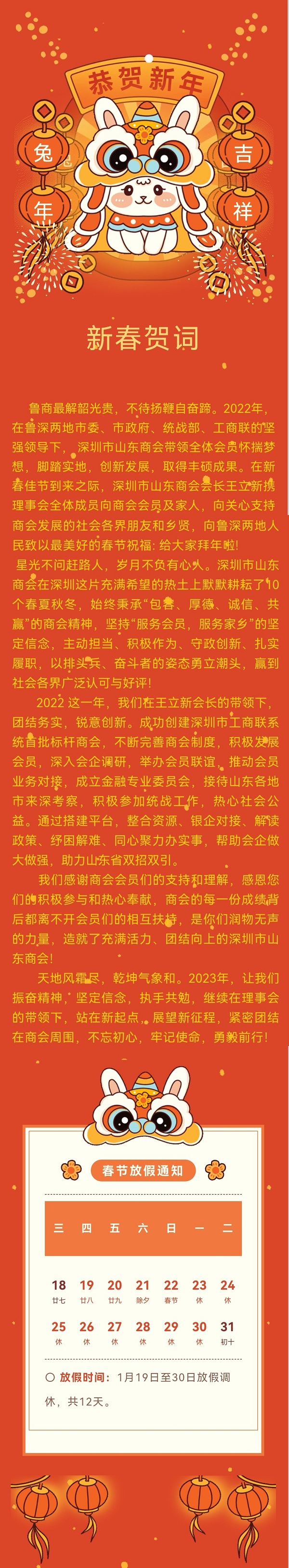 【放假通知】深圳市山東商會恭祝大家新春快樂!萬事勝意!
