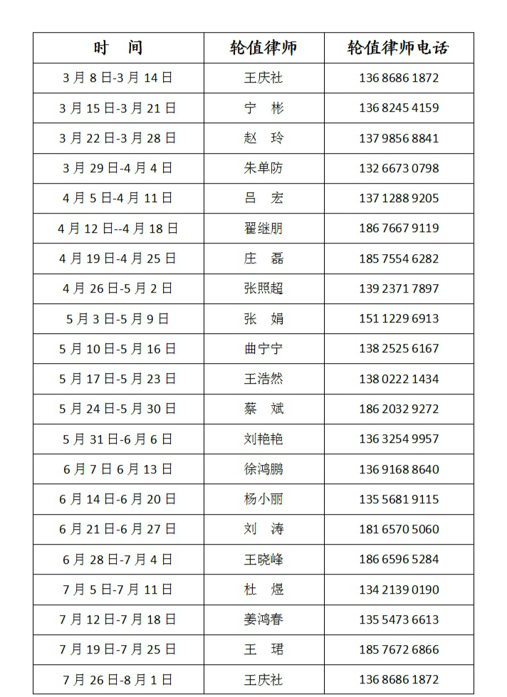 2021年度深圳市山東商會(huì)法工委 法律咨詢服務(wù)輪值表