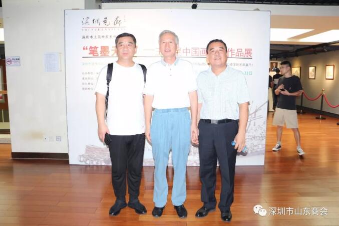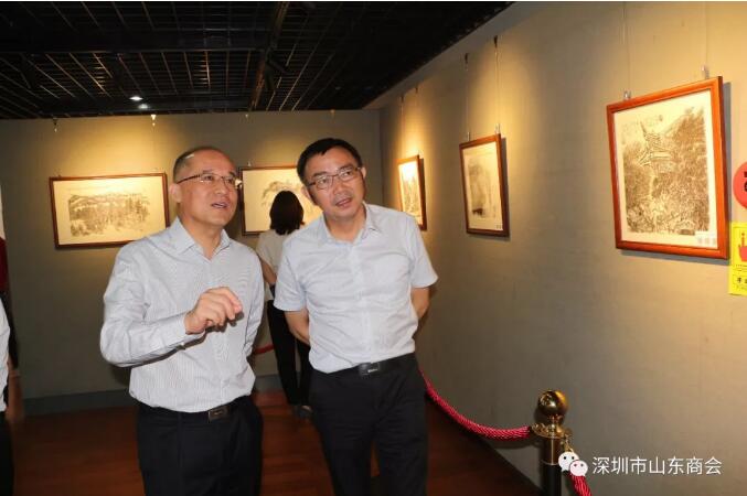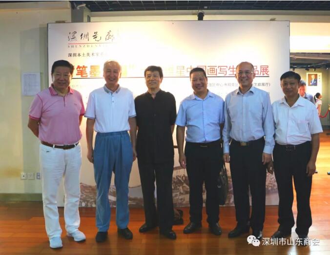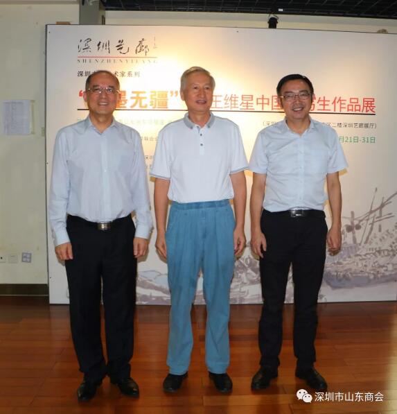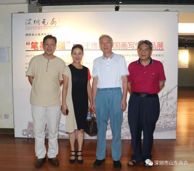 2019年8月21日下午16:30“筆墨無疆”—王維星中國畫寫生作品展在深圳中心書城南區(qū)二樓“深圳藝廊”開幕。此次展覽由深圳市文學藝術界聯合會和深圳出版發(fā)行集團主辦、深圳市美術家協(xié)會承辦、深圳市山東商會、深圳市齊魯書畫院協(xié)辦,并得到深圳市魯粵豐農業(yè)發(fā)展有限責任公司、深圳市騰飛達文化發(fā)展有限公司的大力支持。展覽現場群賢畢至,少長咸集。我會會長王立新,常務副會長畢永濤、張煥祥、郭林槐、梁慶偉、臧延懷,監(jiān)事長王澤云,副會長張慶剛、郭紅菊、張永軍,執(zhí)行秘書長陳振永等商會領導及南山美術家協(xié)會名譽主席王潮安,深圳市企業(yè)家書畫學會會長翟先立,鵬寶軒藝術館館長林俊玉,深圳市瀚墨重彩畫研究院院長趙巨耀,古營軒畫廊莊汝東以及齊魯書畫院馮占奎、劉春昌、段八一、許少杰、馬君等到場祝賀我會創(chuàng)會會長、深圳市齊魯書畫院院長王維星畫展開幕。