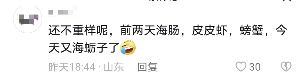 第一次是國慶時(shí)的趕海,海蠣子多到用桶裝,小螃蟹、瀘沽蝦兩小時(shí)撿五麻袋,平時(shí)上百一斤的海腸和美味的海參,讓山東人海鮮自助吃到撐;