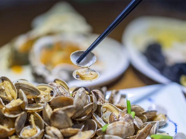 滋滋作響的乳山生蠔、充滿蒜香的威海扇貝……各色海味螺蟶一一排開,蝦兵蟹將個(gè)個(gè)上場(chǎng)。