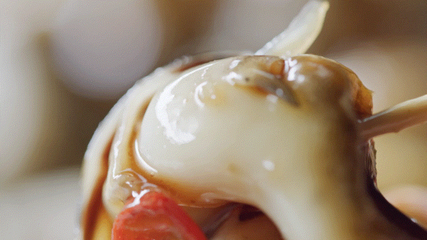 一碗鲅魚餃子、墨魚餃子、黃魚餃子,可以從一口一個(gè)到一只有手掌大小,展示山東餃子的七十二變。輕輕松松,蕩開鮮味的漣漪,游入山東游子的思鄉(xiāng)胃;