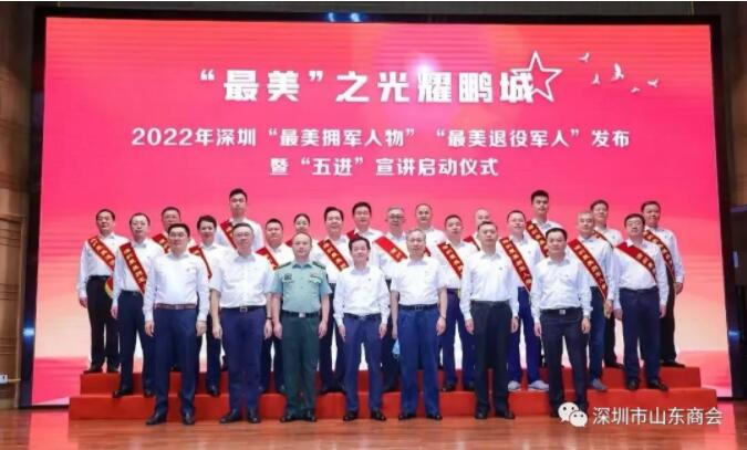 8月10日,“最美”之光耀鵬城,2022年深圳“最美擁軍人物”“最美退役軍人”發(fā)布暨“五進(jìn)”宣講啟動儀式在深圳特區(qū)報(bào)大廈會堂成功發(fā)布。深圳市山東商會執(zhí)行會長、深圳市人大代表、鑫輝餐飲集團(tuán)董事長王傳啟榮獲2022年“深圳最美擁軍人物”榮譽(yù)稱號!深圳市政府副市長陳清、深圳警備區(qū)副司令員喻曉等部門相關(guān)領(lǐng)導(dǎo)出席本次活動。