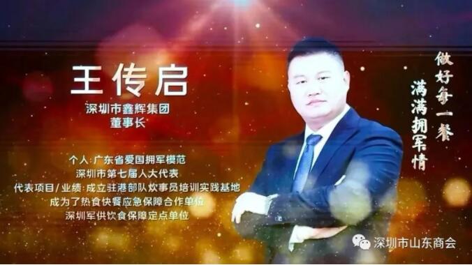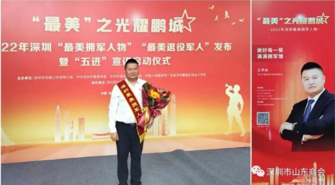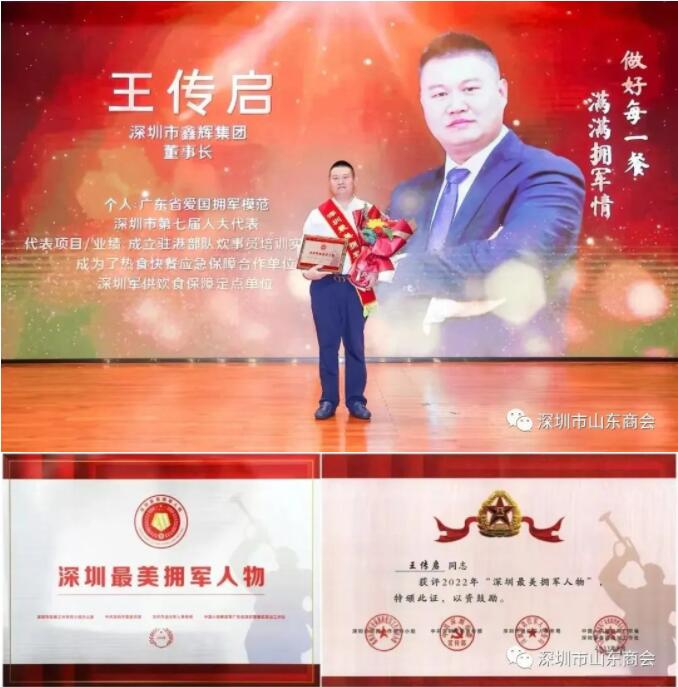 深圳市山東商會執(zhí)行會長、鑫輝餐飲集團(tuán)董事長王傳啟榮獲2022年“深圳最美擁軍人物”榮譽(yù)稱號