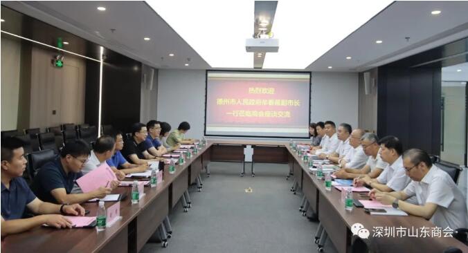 王立新會(huì)長(zhǎng)歡迎牟春雁副市長(zhǎng)一行來訪,隨后王會(huì)長(zhǎng)從黨建引領(lǐng)、組織架構(gòu)、發(fā)展歷程、會(huì)企構(gòu)成、未來發(fā)展等方面介紹了商會(huì)的基本情況。王會(huì)長(zhǎng)表示,德州市歷史悠久、人杰地靈,是龍山文化、大汶口文化發(fā)祥地之一。文化底蘊(yùn)厚重,歷史文化璀璨。德州區(qū)位交通優(yōu)勢(shì)明顯,自古就有“九達(dá)天衢、神經(jīng)門戶”之稱,是華北、華東兩大經(jīng)濟(jì)區(qū)的連接帶,處在環(huán)渤海經(jīng)濟(jì)圈中。被賦予建設(shè)京津冀產(chǎn)業(yè)承接、科技成果轉(zhuǎn)化、優(yōu)質(zhì)農(nóng)產(chǎn)品供應(yīng)、勞動(dòng)力輸送基地以及京津冀南部重要生態(tài)功能區(qū)功能定位。深圳是“科技創(chuàng)新之城”和文創(chuàng)“設(shè)計(jì)之都”,與德州文旅產(chǎn)業(yè)契合度高,未來,山東商會(huì)將繼續(xù)發(fā)揮橋梁和紐帶作用,積極為深圳、德州文旅產(chǎn)業(yè)牽線搭橋,為德州市文旅產(chǎn)業(yè)貢獻(xiàn)力量。