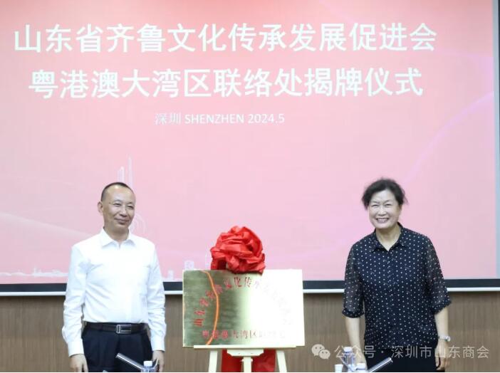 隨后,在與會(huì)人員的見證下,吳翠云主席、姜國董事長共同為“粵港澳大灣區(qū)聯(lián)絡(luò)處”揭牌,聯(lián)絡(luò)處的正式揭牌,是兩會(huì)在文化傳承與發(fā)展領(lǐng)域合作的具體體現(xiàn),也是推動(dòng)齊魯文化在粵港澳大灣區(qū)傳播與發(fā)展的重要舉措。聯(lián)絡(luò)處將依托山東商會(huì)和深圳東華的資源和優(yōu)勢,積極搭建平臺、整合資源,為齊魯文化的傳承與發(fā)展提供有力支持。