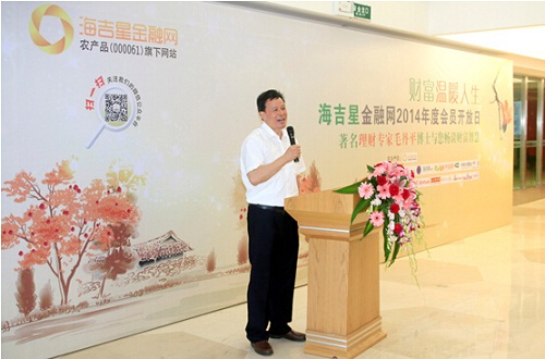 10月18日,深圳市國資委直管上市公司農(nóng)產(chǎn)品股份(SZ:000061)旗下互聯(lián)網(wǎng)金融平臺——海吉星金融網(wǎng)的“財(cái)富溫暖人生——2014年度會(huì)員開放日”活動(dòng)在農(nóng)產(chǎn)品股份總部會(huì)議廳舉辦。我會(huì)秘書長助理、海吉星金融營銷總監(jiān)李娜策劃并主持了本次活動(dòng)。出席會(huì)議的領(lǐng)導(dǎo)有深圳市金融辦肖志家副主任、深圳市人大代表肖幼美女士、深圳市農(nóng)產(chǎn)品股份公司副總裁張鍵、海吉星金融董事長陳群等,金融網(wǎng)會(huì)員代表100多人參會(huì),多家媒體現(xiàn)場報(bào)道。肖志家主任代表政府主管部門對海吉星金融網(wǎng)三年來的穩(wěn)健運(yùn)營給予了肯定并對其發(fā)展寄予厚望,希望其作為行業(yè)標(biāo)桿能做大做強(qiáng)。國內(nèi)著名理財(cái)專家毛丹平博士做了“財(cái)富溫暖人生”的精彩理財(cái)講座。我會(huì)副秘書長陳振永應(yīng)邀出席了本次活動(dòng)。