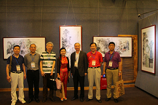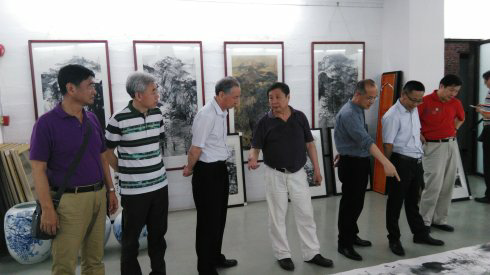 商會(huì)領(lǐng)導(dǎo)和畫家在展廳合影