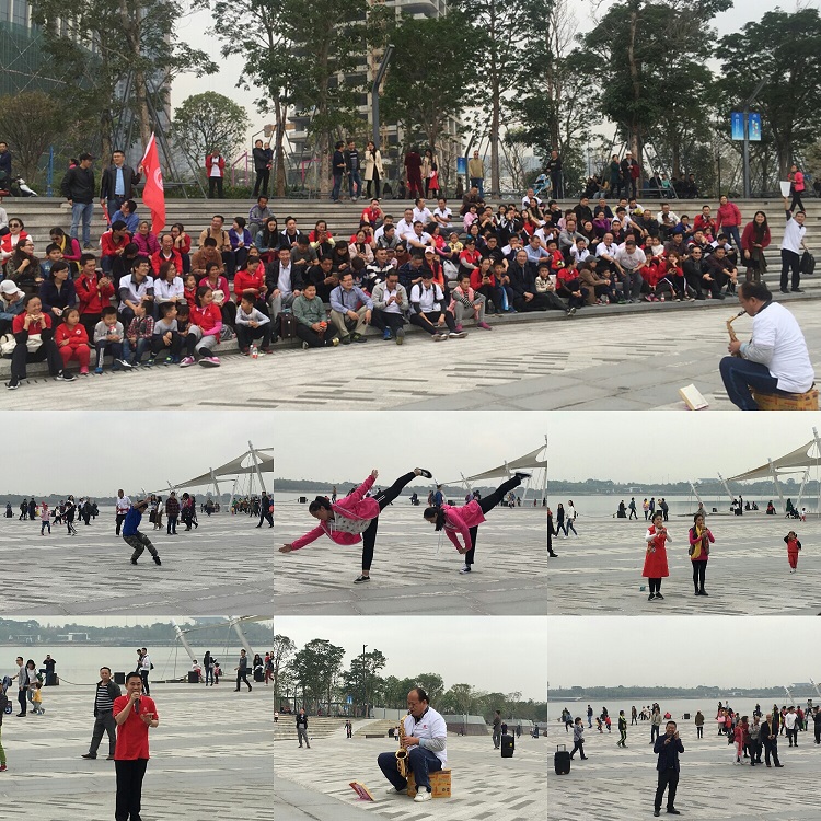 下午四點半,潮汐廣場會員表演環(huán)節(jié)開始。大家在觀眾席席地而坐等待觀賞由各分會呈現(xiàn)的精彩節(jié)目:有南山二分會會員宋磊浪漫演繹的悠揚渾厚的薩克斯獨奏《月亮代表我的心》,有商會文工團代表劉文香與姐妹演奏的柔美典雅的葫蘆絲《我的家鄉(xiāng)三峽美》,有寶安(光明)分會會員靳啟高深情獻唱的《心要讓你聽見》,有南山一分會李軍副會長推薦的激情四射的男聲獨唱《熱情的沙漠》串燒曲,更有山東鄆城宋江武校孩子們精彩的武術表演助興。現(xiàn)場叫好聲、鼓掌聲不絕于耳,引來人才公園的游客們紛沓至來,其中不乏在深圳的山東人聞聲前來咨詢?nèi)霑?,無不體現(xiàn)了商會日益擴大的社會影響力。
