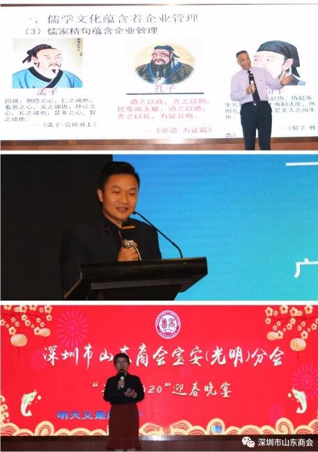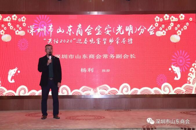 2020年1月2日,深圳市山東商會(huì)寶安(光明)分會(huì)新春聯(lián)誼會(huì)在寶安新寶源酒樓隆重舉辦。我會(huì)常務(wù)副會(huì)長、寶安(光明)分會(huì)負(fù)責(zé)人臧延懷,常務(wù)副會(huì)長兼秘書長王維、常務(wù)副會(huì)長梁慶偉、楊利,副會(huì)長梁尚迎、朱禮貴、毛秀奎、李正文、吉登寬,執(zhí)行秘書長兼辦公室主任陳振永、副秘書長兼黨辦主任張含增、福田二分會(huì)召集人王慶社、羅湖分會(huì)召集人李青、南山一分會(huì)李井輝、龍崗分會(huì)王建等70多位寶安(光明)分會(huì)會(huì)員及嘉賓應(yīng)邀出席。聯(lián)誼會(huì)由寶安(光明)分會(huì)召集人扈炳燕主持。
