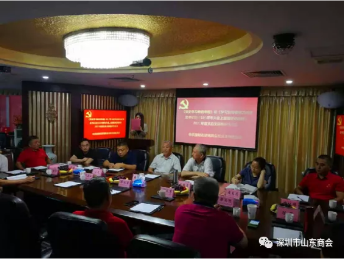 會議由深圳市山東商會黨委成員、深圳市濟南商會黨總支書記張永軍同志主持。深圳市山東商會黨委書記王維星同志一行應邀出席。深圳市山東商會黨委委員、深圳市濟南商會黨總支副書記畢永濤同志,深圳市山東商會黨委委員、深圳市濟南商會黨總支宣傳委員、林建黨支部書記臧延懷同志,深圳市山東商會黨委委員、深圳市濟南商會黨總支紀檢委員、寶山明水黨支部書記梁尚迎同志,以及深平第一、深平第二、銀儲、林建、寶山明水等黨支部委員,銀儲集團入黨積極分子,深圳市濟南商會黨員代表公文、孟帥等24名黨員同志參加會議。