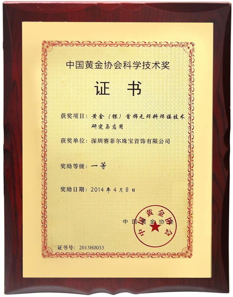 無焊料黃金在保證純度和色正的同時,兼具K金、3D硬金、5G黃金的美觀度。在硬度、耐用度、安全度、磨損度得到不同程度提升的同時,也解決了長期困擾黃金首飾行業(yè)的回收污染難題。讓黃金飾品的回收提純更加環(huán)保、低碳,被譽為“黃金中的黃金”。賽菲爾珠寶憑借首創(chuàng)“無焊料焊接技術”,榮獲了“中國黃金協(xié)會科學技術一等獎”。同時,擁有了國家發(fā)明專利在內的 400 多項專利。