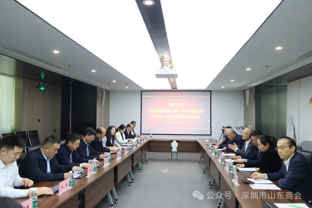 2024年12月26日,安丘市政協(xié)副主席、市工商聯(lián)主席王洪書,安丘市委統(tǒng)戰(zhàn)部分管日常工作的副部長蘇瑛,安丘市委組織部副部長、市黨員教育中心主任董曉娜,安丘市委統(tǒng)戰(zhàn)部副部長、市僑辦主任、市港澳辦主任牛茂華,安丘市投促中心副主任李明,安丘市政府駐深圳辦事處主任馬翀,安丘市農投集團副總經(jīng)理于國慶等一行15人到訪我會對接交流,我會會長王立新,副會長王剛,黨委辦公室主任張含增,理事高樹謙,執(zhí)行秘書長兼辦公室主任陳振永,副秘書長、濰坊商會秘書長扈炳燕等熱情接待并座談交流。