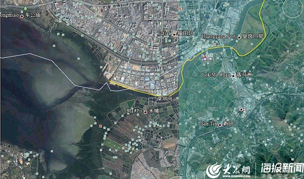 從太空俯瞰深圳河的入???。從衛(wèi)星圖上看,深圳河和巴黎的塞納河,英國(guó)的泰晤士河寬度、流向基本相同,身臨其境卻大相徑庭。摘自南兆旭著《深圳自然筆記》