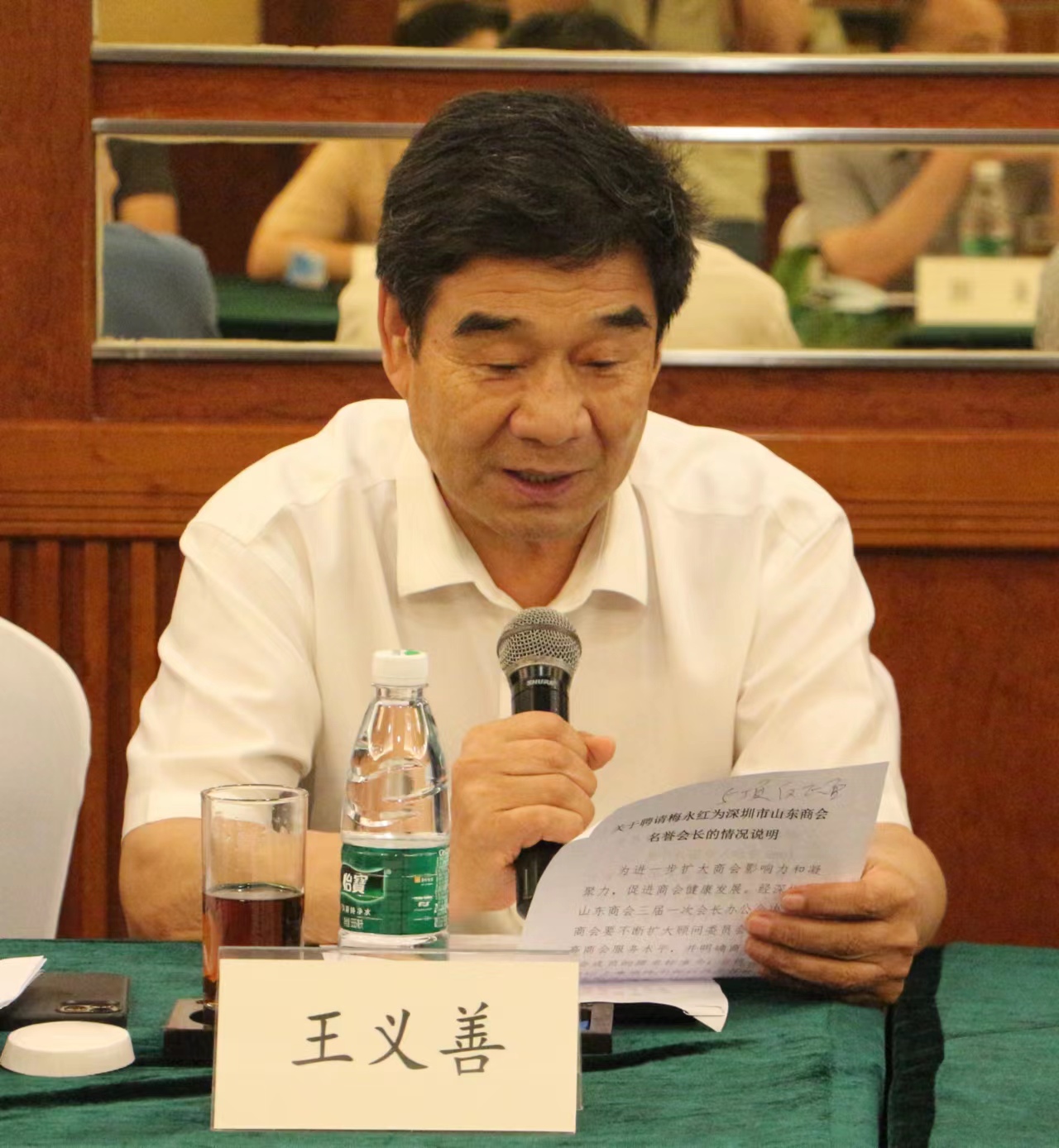執(zhí)行會(huì)長(zhǎng)王義善匯報(bào)聘請(qǐng)梅永紅為商會(huì)名譽(yù)會(huì)長(zhǎng)情況說(shuō)明