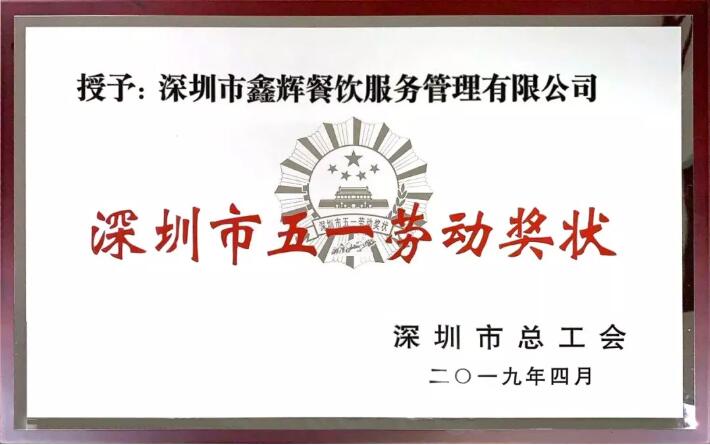 鑫輝餐飲集團喜獲“深圳市五一勞動獎狀”