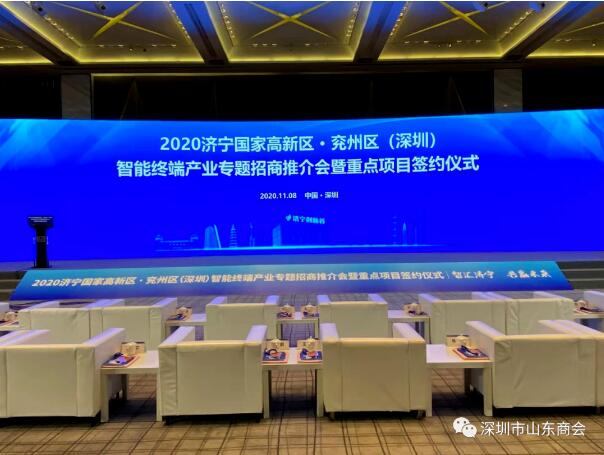 11月8日,2020濟(jì)寧國(guó)家高新區(qū)、兗州區(qū)(深圳)智能終端產(chǎn)業(yè)專題招商推介會(huì)暨重點(diǎn)項(xiàng)目簽約儀式在深圳舉行。市委書記、市人大常委會(huì)主任傅明先,深圳市社會(huì)組織總會(huì)執(zhí)行會(huì)長(zhǎng)孫文平,廣東高科技產(chǎn)業(yè)商會(huì)會(huì)長(zhǎng)王理宗出席并致辭,我會(huì)執(zhí)行秘書長(zhǎng)陳振永受王立新會(huì)長(zhǎng)委托代表深圳市山東商會(huì)應(yīng)邀出席會(huì)議。