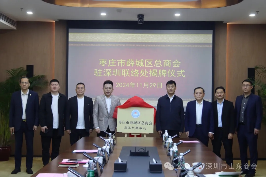 會上,雙方就如何加強信息溝通、搭建合作平臺、推進項目落地等方面達成了共識。隨后魏秀申部長和孫宜斌副會長為“薛城區(qū)總商會駐深圳聯(lián)絡(luò)處”揭牌。魏秀申部長表示,駐深聯(lián)絡(luò)處揭牌儀式只是開始,希望通過揭牌薛城區(qū)能與深圳建立友好往來,能與深圳企業(yè)家結(jié)下深厚友誼,共同推動兩地合作結(jié)出豐碩成果。