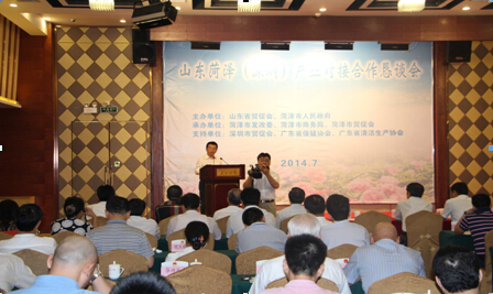 2014年7月16日下午,山東菏澤(深圳)產(chǎn)業(yè)對接合作懇談會在人民大廈四樓福田廳舉行,王維星會長、王維副會長和王凌鴻、陳振永副秘書長應邀出席。廣東省保健協(xié)會、清潔生產(chǎn)協(xié)會、山東省促貿(mào)會、深圳市促貿(mào)委等領導和客商約200人出席了此次懇談會。王維星會長代表商會致辭,他表示今后將繼續(xù)支持菏澤在深圳的各種招商活動。