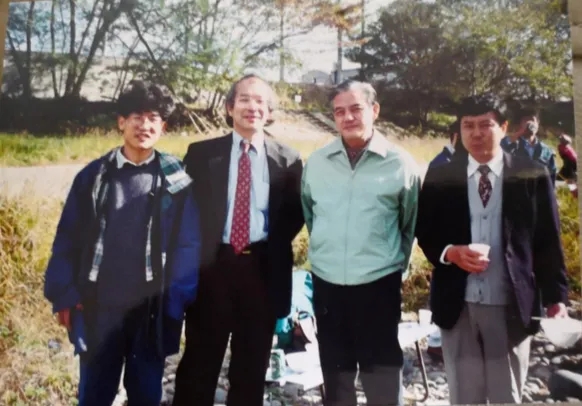 薛其坤(左一)在日本求學(xué)期間與導(dǎo)師櫻井利夫(左二)合影