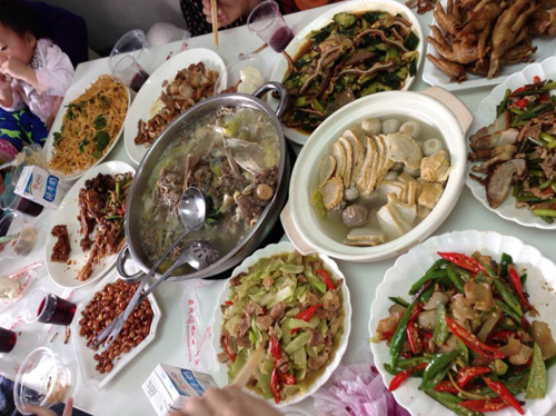 秘書處成員的親人享受可口的山東菜