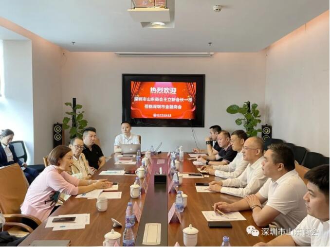 王立新會長感謝金融商會領導的熱情接待,并簡要介紹了深圳市山東商會的發(fā)展歷程與工作開展情況。他表示山東商會一直秉承服務會員、服務家鄉(xiāng)的宗旨,立足粵港澳大灣區(qū),傳承發(fā)揚山東優(yōu)秀齊魯文化,為魯深兩地企業(yè)家搭建服務平臺,促進魯深兩地經(jīng)貿(mào)往來,積極發(fā)揮橋梁紐帶作用,同時為會員企業(yè)拓展發(fā)展平臺,聯(lián)合深圳異地商會發(fā)起成立異地商會會長及秘書長聯(lián)席會議,大家不定期組織活動,溝通交流、創(chuàng)造合作機會。王會長表示,山東商會與金融商會空間距離近,在產(chǎn)業(yè)金融合作上更要走得近,為金融商會推介優(yōu)質產(chǎn)業(yè)資源,也為山東商會的產(chǎn)業(yè)增加金融助力;同時,也希望以兩家商會的深入合作為基礎,為山東本土產(chǎn)業(yè)提供優(yōu)質金融服務,實現(xiàn)深圳與山東的互融互通。