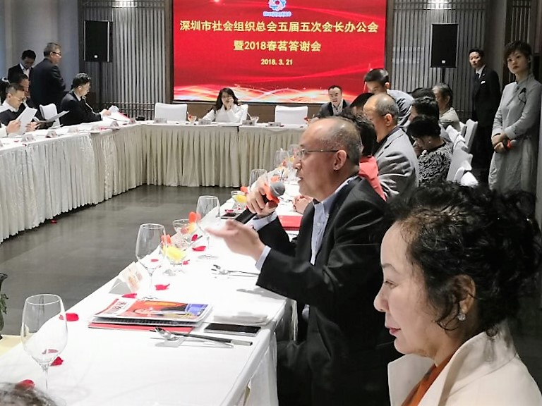 3月21日,深圳市社會(huì)組織總會(huì)在智和匯館召開五屆五次會(huì)長(zhǎng)辦公會(huì)暨2018春茗答謝會(huì),總會(huì)會(huì)長(zhǎng)、萬(wàn)科集團(tuán)創(chuàng)始人王石,總會(huì)執(zhí)行會(huì)長(zhǎng)、聯(lián)合黨委書記葛明,總會(huì)副監(jiān)事長(zhǎng)、聯(lián)合黨委副書記張武波、我會(huì)會(huì)長(zhǎng)王立新及總會(huì)理事會(huì)70多家副會(huì)長(zhǎng)單位主要負(fù)責(zé)人、監(jiān)事會(huì)成員參加會(huì)議。市社會(huì)組織管理局局長(zhǎng)凌沖應(yīng)邀出席會(huì)議。會(huì)議由張武波副書記主持。