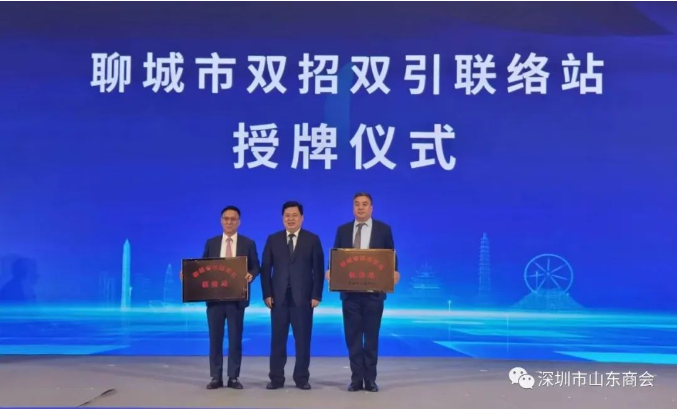 推介會(huì)上,聊城市政府在深圳市山東商會(huì)和香港全港各區(qū)工商聯(lián)設(shè)立了“聊城市雙招雙引聯(lián)絡(luò)站”。中華全國(guó)工商聯(lián)常委、全港各區(qū)工商聯(lián)首席會(huì)長(zhǎng)、博士盧錦欽,深圳市山東商會(huì)執(zhí)行會(huì)長(zhǎng)兼秘書長(zhǎng)梁慶偉,聊城市委副書記、市長(zhǎng)張百順共同為“聊城市雙招雙引聯(lián)絡(luò)站”授牌。聯(lián)絡(luò)站的設(shè)立,進(jìn)一步拉近了深聊兩地的時(shí)空距離,必將開啟“深聊合作”更加美好的未來。