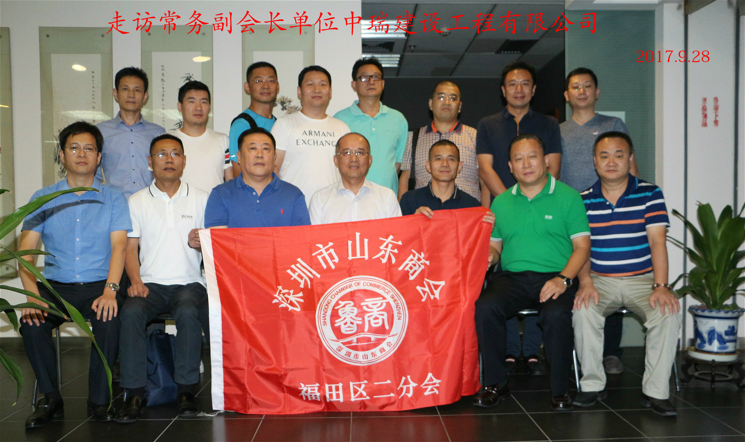 在普天同歡,舉國同慶的國慶節(jié)、中秋節(jié)雙節(jié)來臨之際,為了響應(yīng)商會的工作部署。9月28日下午,我會福田區(qū)二分會組織分會會員走訪了常務(wù)副會長單位中瑞建設(shè)工程有限公司。并進(jìn)行了交流座談會。常務(wù)副會長孫永亮、郭林槐,副會長兼福田區(qū)二分會負(fù)責(zé)人任吉忠,常務(wù)理事段緒強(qiáng),理事張亮、李慶生,理事兼福田區(qū)二分會召集人王慶社等參加了座談會。本次走訪活動特別邀請了商會會長王立新,常務(wù)副會長兼秘書長王維,副會長兼福田區(qū)一分會負(fù)責(zé)人朱禮貴出席了此次走訪活動。